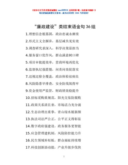 / “廉政建设”类结束语金句36组