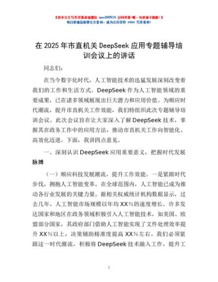 / 在2025年市直机关DeepSeek应用专题辅导培训会议上的讲话