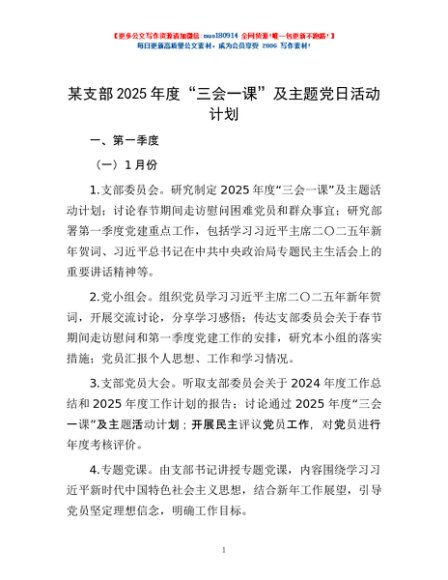 / 某支部2025年度“三会一课”及主题党日活动计划
