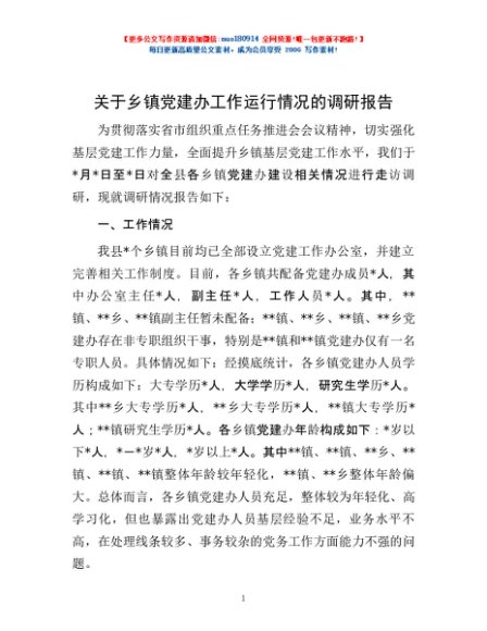 / 关于乡镇党建办工作运行情况的调研报告