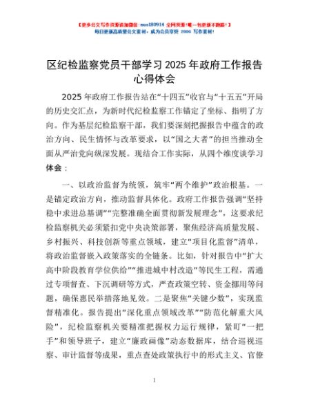 / 区纪检监察党员干部学习2025年政府工作报告心得体会