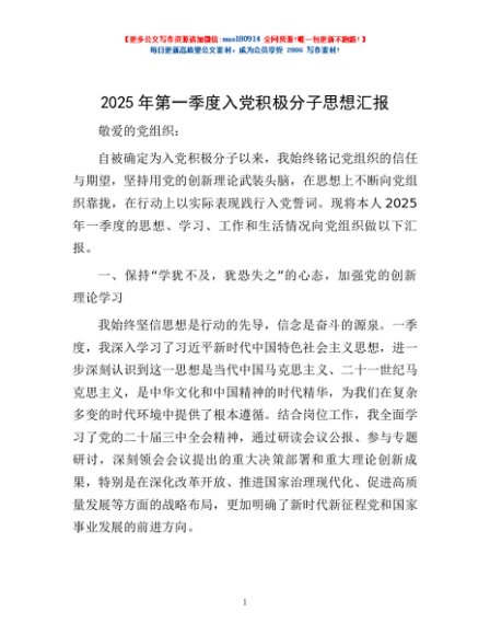 / 2025年第一季度入党积极分子思想汇报