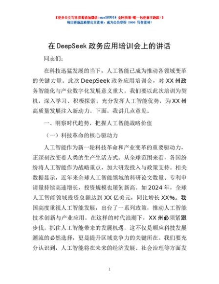 / 在DeepSeek政务应用培训会上的讲话