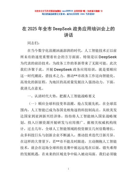 / 在2025年全市DeepSeek政务应用培训会上的讲话