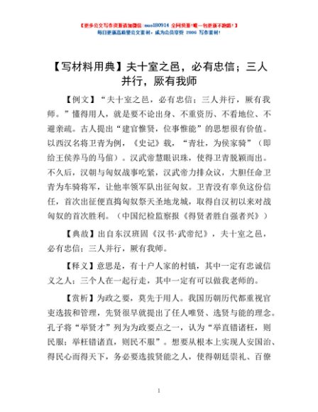 【写材料用典】夫十室之邑,必有忠信;三人并行,厥有我师