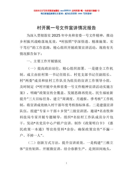 村开展一号文件宣讲情况报告