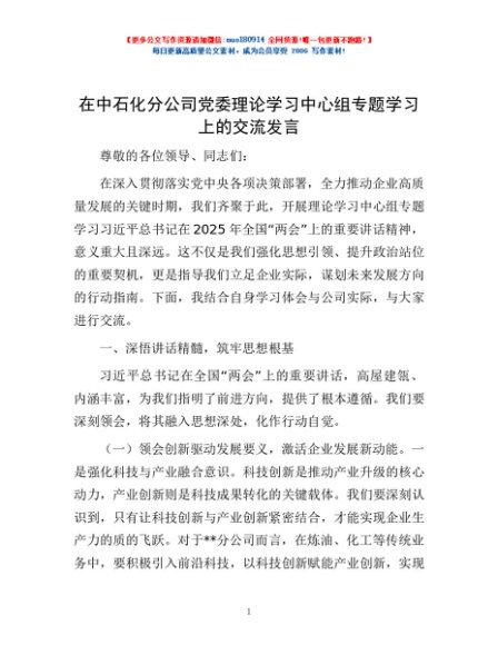 / 在中石化分公司党委理论学习中心组专题学习上的交流发言