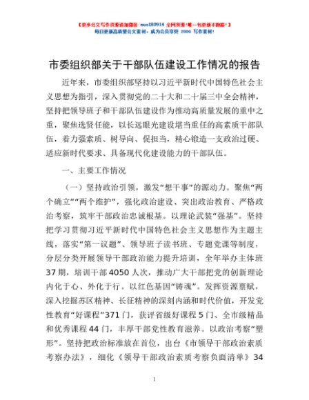 / 市委组织部关于干部队伍建设工作情况的报告