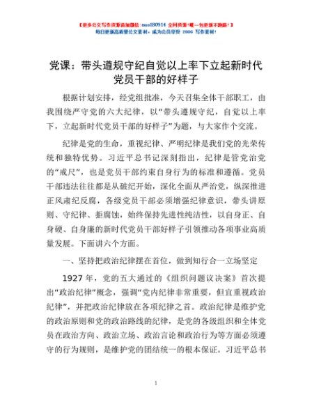 / 党课:带头遵规守纪 自觉以上率下 立起新时代党员干部的好样子
