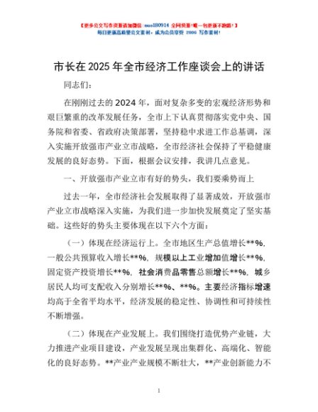 / 市长在2025年全市经济工作座谈会上的讲话