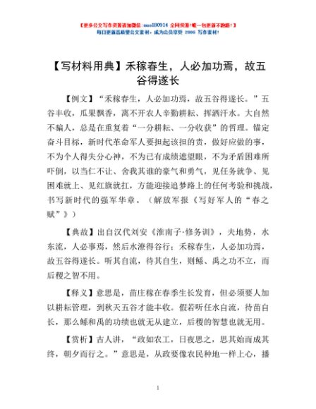 【写材料用典】禾稼春生,人必加功焉,故五谷得遂长