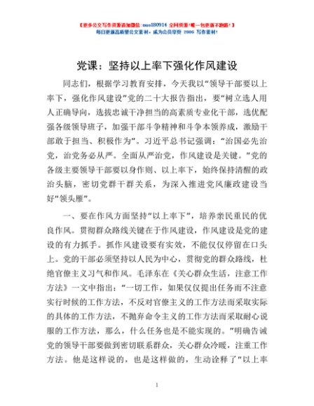 / 党课:坚持以上率下 强化作风建设
