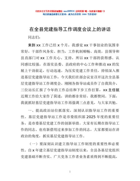 / 在全县党建指导工作调度会议上的讲话