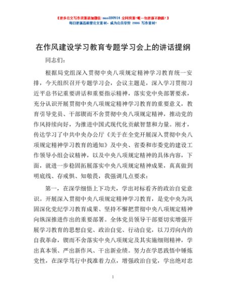 / 在作风建设学习教育专题学习会上的讲话提纲