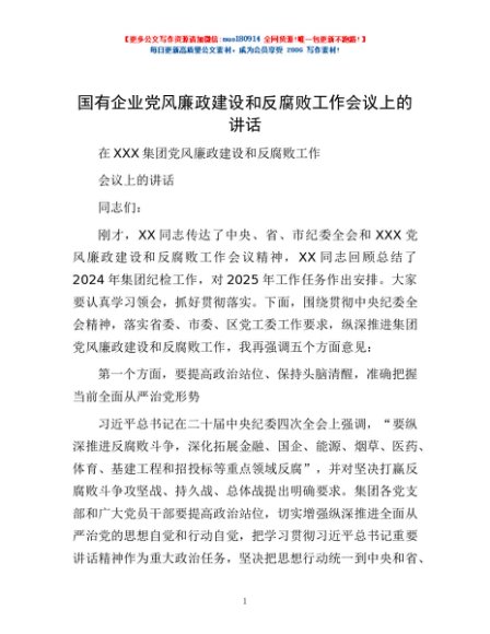 / 国有企业党风廉政建设和反腐败工作会议上的讲话