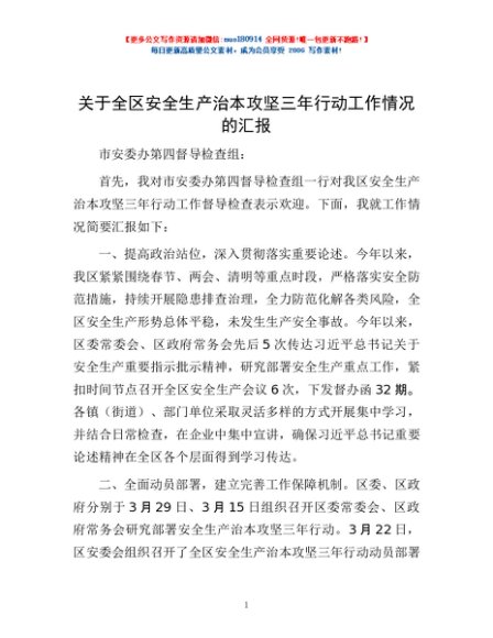 / 关于全区安全生产治本攻坚三年行动工作情况的汇报