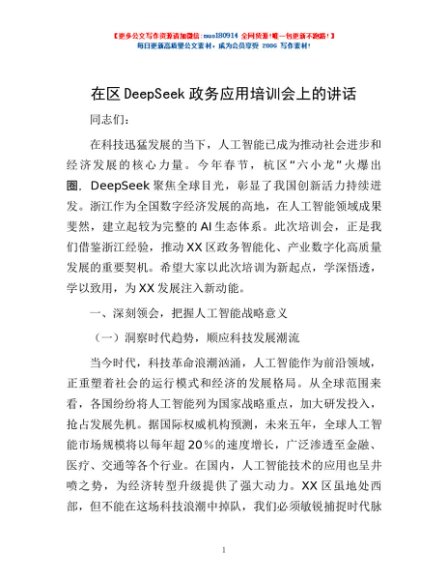 / 在区DeepSeek政务应用培训会上的讲话