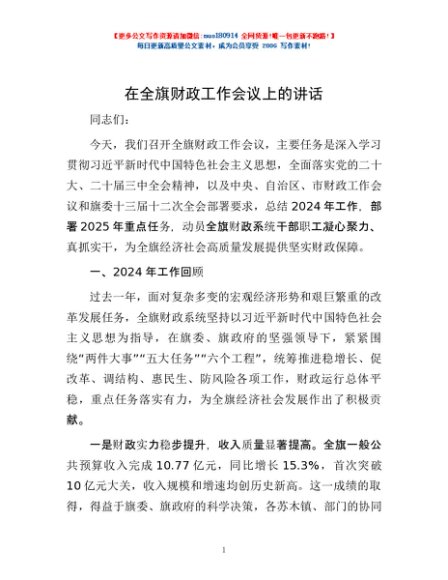 / 在全旗财政工作会议上的讲话