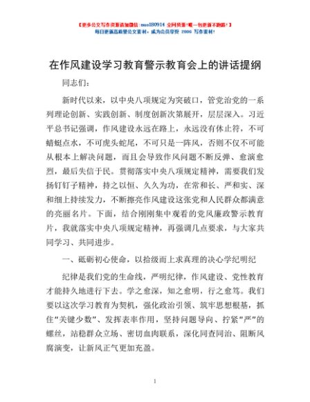 / 在作风建设学习教育警示教育会上的讲话提纲