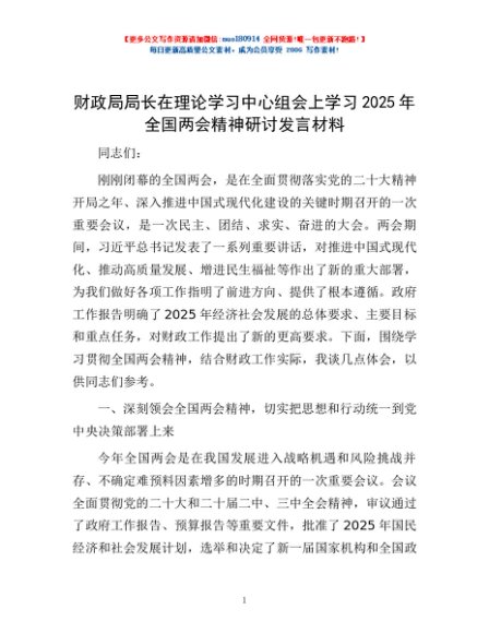 / 财政局局长在理论学习中心组会上学习2025年全国两会精神研讨发言材料