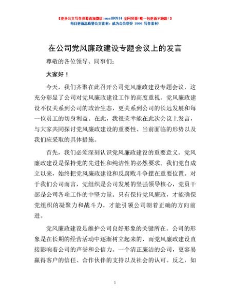 / 在公司党风廉政建设专题会议上的发言
