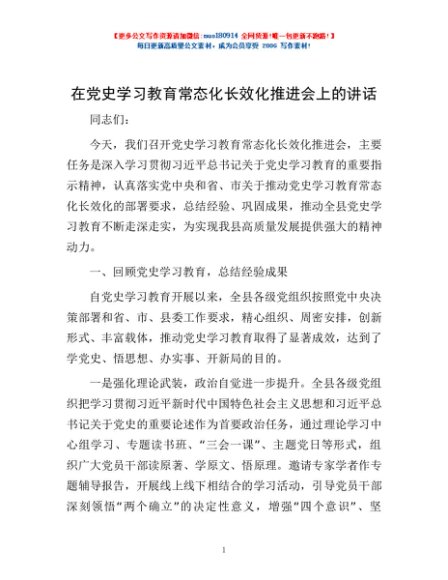 / 在党史学习教育常态化长效化推进会上的讲话