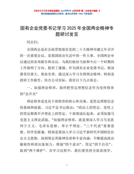 / 国有企业党委书记学习2025年全国两会精神专题研讨发言