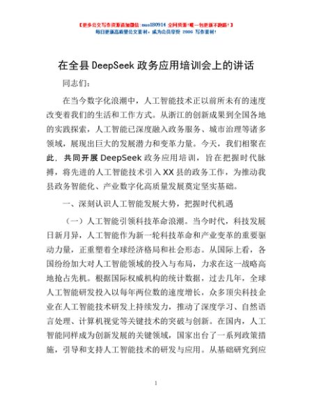 / 在全县DeepSeek政务应用培训会上的讲话