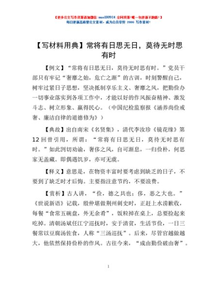 / 【写材料用典】常将有日思无日,莫待无时思有时