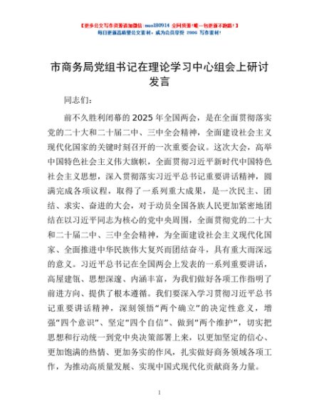 / 市商务局党组书记在理论学习中心组会上研讨发言
