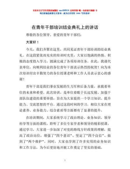 / 在青年干部培训结业典礼上的讲话