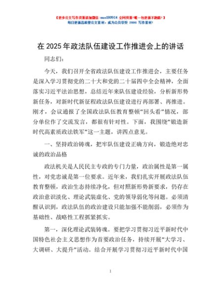 / 在2025年政法队伍建设工作推进会上的讲话