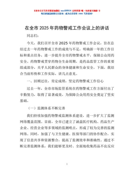 / 在全市2025年药物警戒工作会议上的讲话