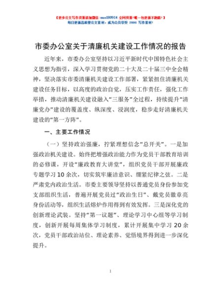 / 市委办公室关于清廉机关建设工作情况的报告