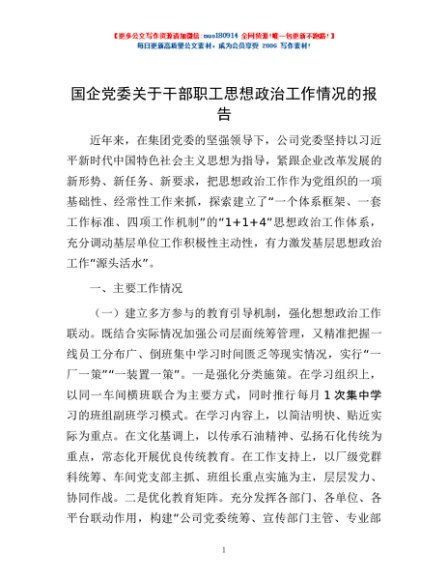 / 国企党委关于干部职工思想政治工作情况的报告