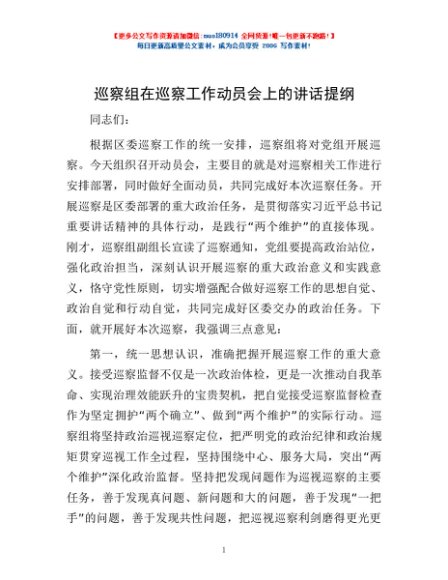 / 巡察组在巡察工作动员会上的讲话提纲