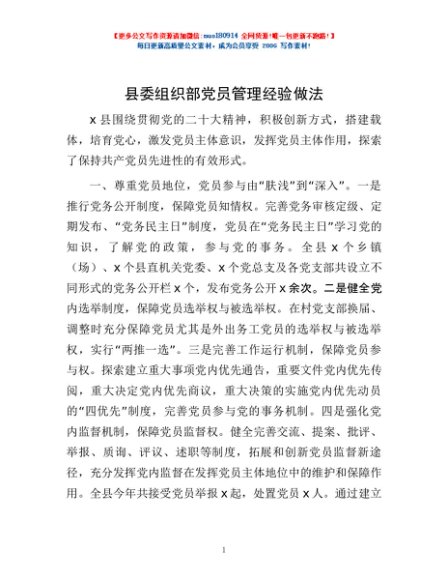 / 县委组织部党员管理经验做法