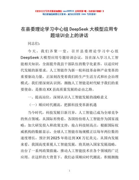 / 在县委理论学习中心组DeepSeek大模型应用专题培训会上的讲话