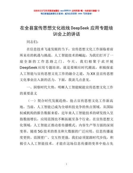 / 在全县宣传思想文化战线DeepSeek应用专题培训会上的讲话