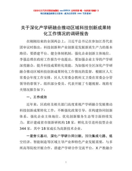 / 关于深化产学研融合推动区域科技创新成果转化工作情况的调研报告