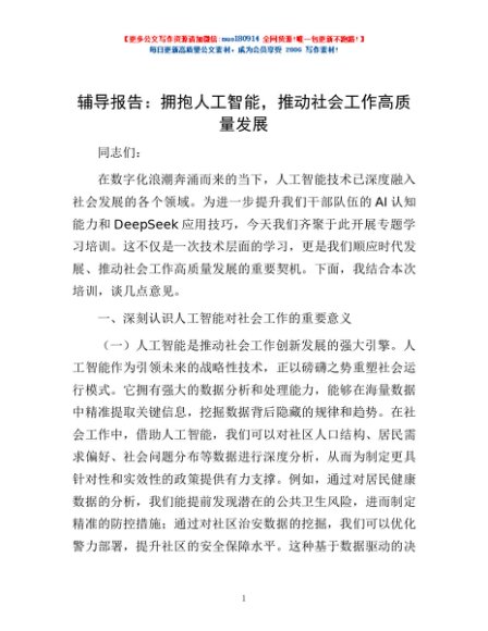 辅导报告:拥抱人工智能,推动社会工作高质量发展