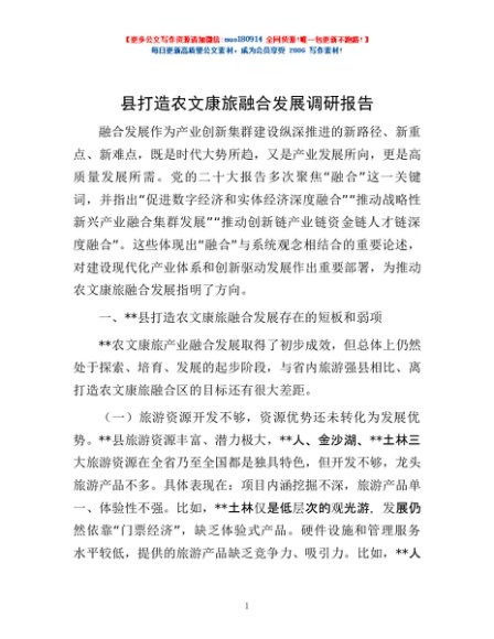 / 县打造农文康旅融合发展调研报告