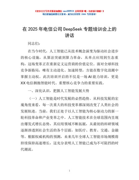 / 在2025年电信公司DeepSeek专题培训会上的讲话