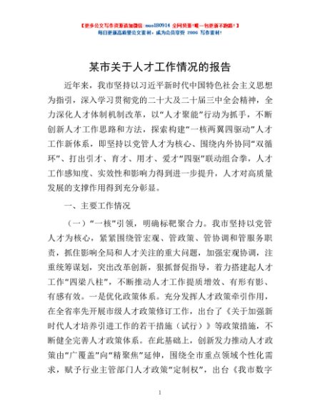 / 某市关于人才工作情况的报告