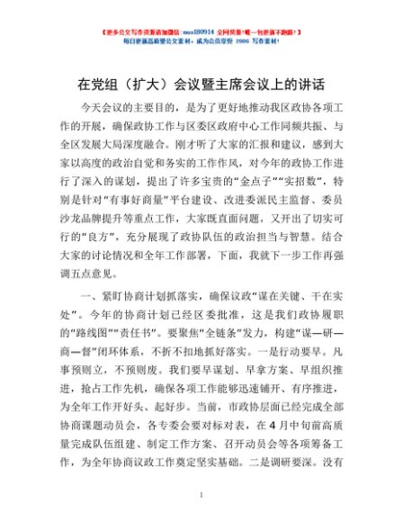 / 在党组(扩大)会议暨主席会议上的讲话