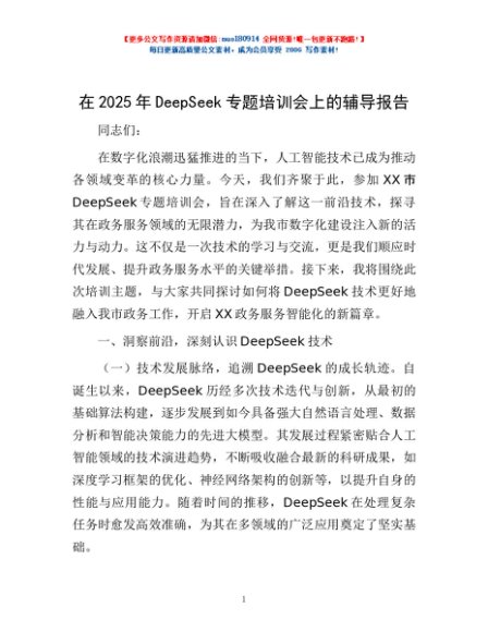 / 在2025年DeepSeek专题培训会上的辅导报告