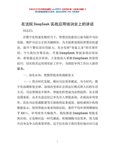 / 在法院DeepSeek实战应用培训会上的讲话