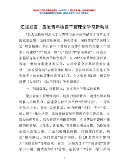 / 汇报发言:激发青年检察干警理论学习新动能