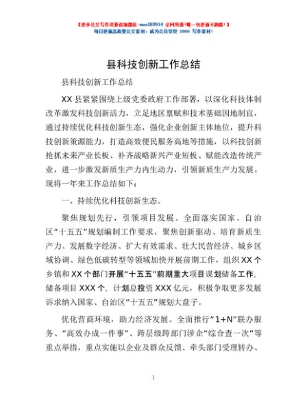 / 县科技创新工作总结