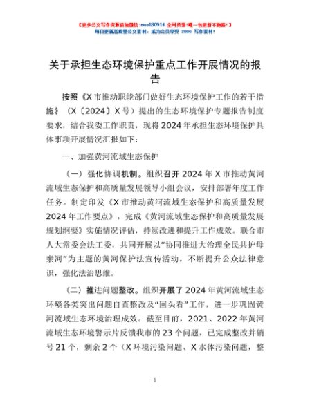 / 关于承担生态环境保护重点工作开展情况的报告